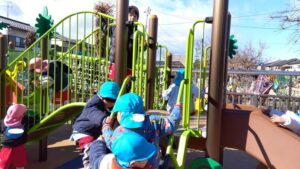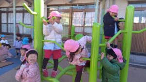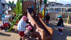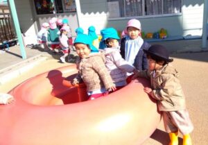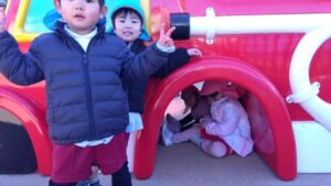 毎朝、満3才クラスのお友達と年少クラスのお友達は仲良く一緒に遊んでいます❕