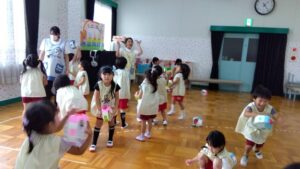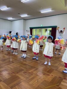 運動会に向けてお遊戯室でお遊戯の練習をしました