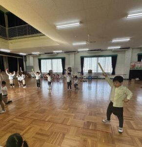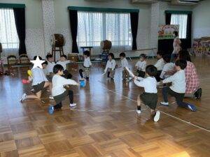 2025年12月3日 お遊戯会の練習☆年長クラス 今週末はいよいよお遊戯会❕ みんな練習がんばっています👦👧👏 さくら組 お遊戯のようす つばき組 お遊戯のようす うめ組 劇「美女と野獣」のようす もどる