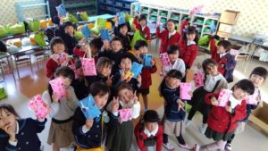 お帰りの時間には手作りの袋の中にお土産を先生からもらいましたよ☆