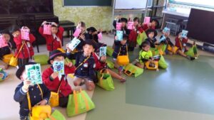 お帰りの時間には手作りの袋の中にお土産を先生からもらいましたよ☆