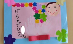 手形をした後、そのうえにお顔を描いてメッセージをかきました😊