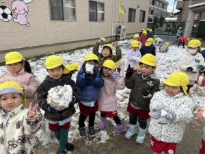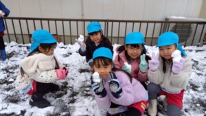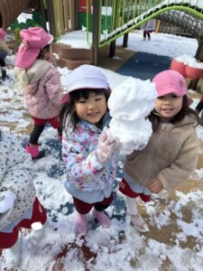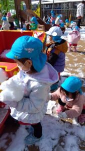 雪遊びの時間では、みんな雪ダルマを作ったり