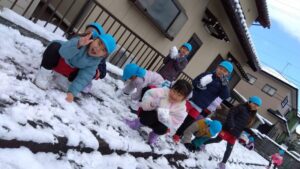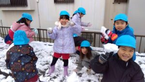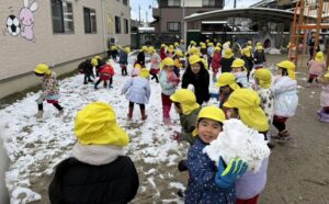 幼稚園のみんなは雪遊びがしたくて待ちきれないようす✨