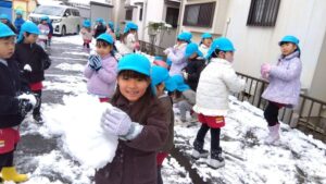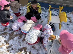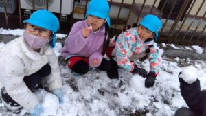 雪遊びの時間では、みんな雪ダルマを作ったり