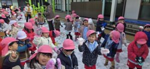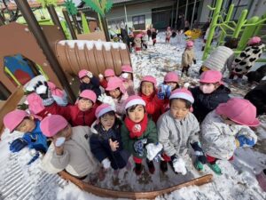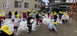 幼稚園のみんなは雪遊びがしたくて待ちきれないようす✨