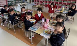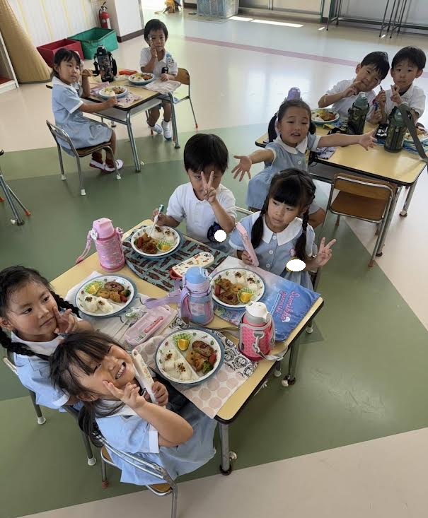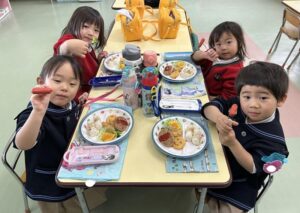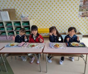 発表会の前にお誕生月のみんなでお給食を食べているようす🍴