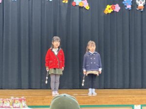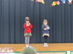 たて笛での演奏では高音をだすところは難しいですが頑張ってひけてました