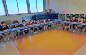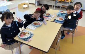 発表会の前にお誕生月のみんなでお給食を食べているようす🍴