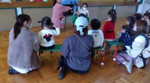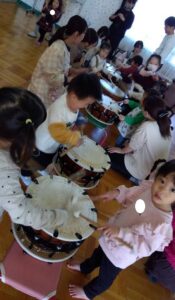バチを手に取り音楽に合わせおどりました。