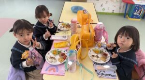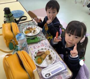 発表会の前にお誕生月のみんなでお給食を食べているようす🍴