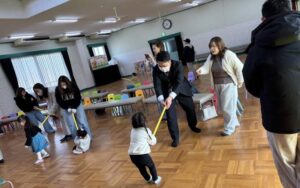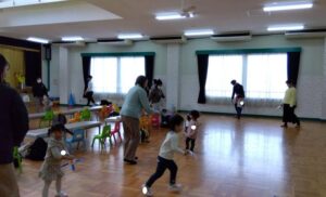 パパやママと体操棒でひっぱりあいっこ