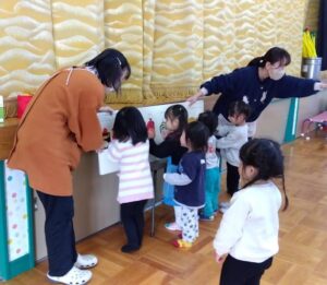 ママと一緒に、指をつかって”ペタッ!”